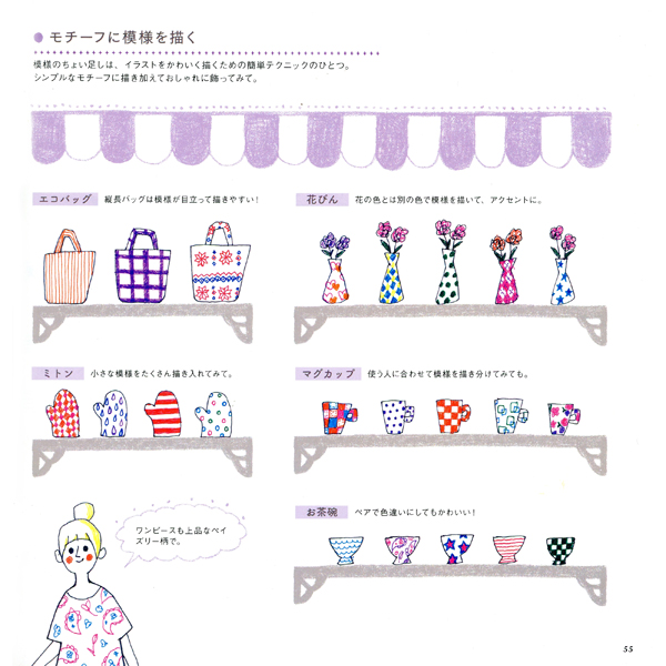 好奇心旺盛な8人の女子たちと、乗り物や動物などのカットを1冊分担当しています。