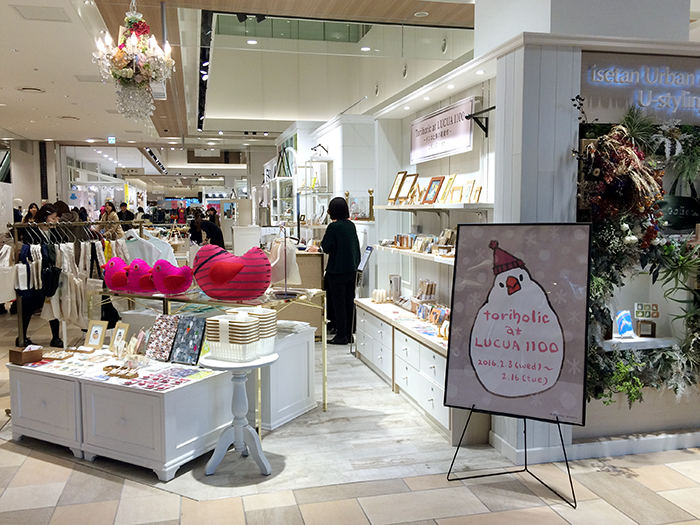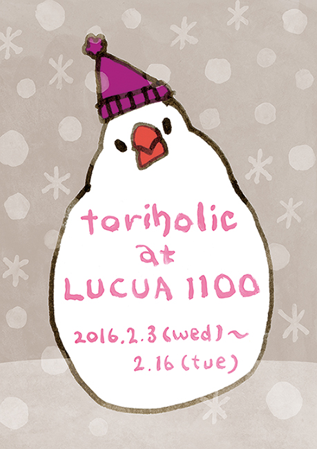 大阪駅前の商業施設LUCUA1100で開催された、鳥をモチーフにしたグッズのイベント『toriholic at LUCUA1100』のポスターやフライヤーのイラストを描きました。