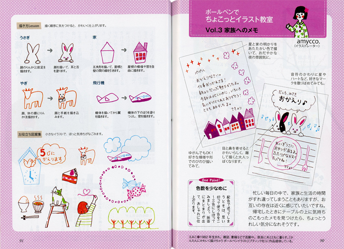 年賀状、バースデーカード、招待状など月ごとのテーマに沿って、簡単にかわいく描けるボールペンイラストの描き方やアイデアを紹介しました。